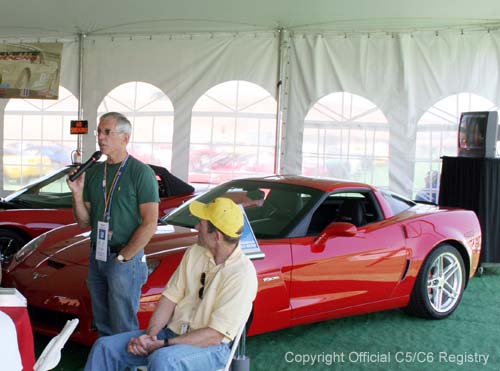 Registry reporter Janet Curran chats with Speed GT winner Lou Gigliotti. |